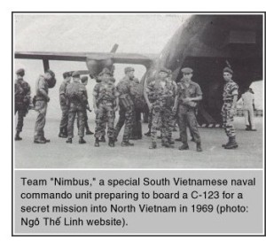 Up until this time the Nautilus operations were all conducted by the CIA. The Nautilus crews were civilians that had been recruited by the CIA but there were also a number of RVN Navy frogmen that had received special training to carry out sapper attacks using explosives. Most of these frogmen were in a team of 18 sailors that had received special training in Taiwan in August, 1960.